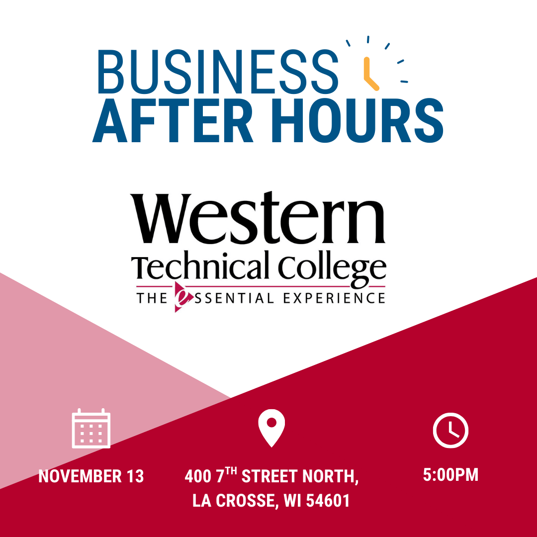 Register for our November Business After Hours at Western Technical College! Join the Chamber and Western for an evening of networking, food, and drinks!