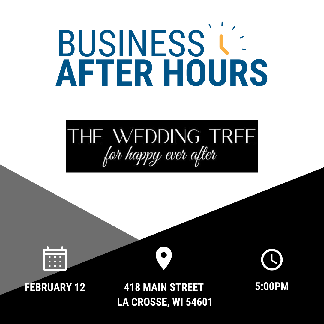 Register for our February Business After Hours at The Wedding Tree! Join the Chamber and The Wedding Tree for an evening of networking, food, and drinks!